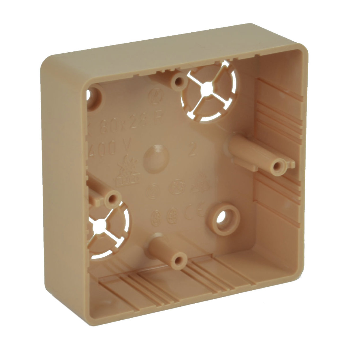 LK 80X28R/1 - KRABICE LIŠTOVÁ, konfigurace I1, barva IMITACE/BŘÍZA RŮŽOVÁ, balení - 10/120 ks  -  určené pro přístroje modelové řady Classic nebo Swing s velkou montážní hloubkou, pro instalaci na materiály třídy reakce na oheň E nebo F použijte izolační podložku, odstín pro instalace k lištám v odstínu I1
