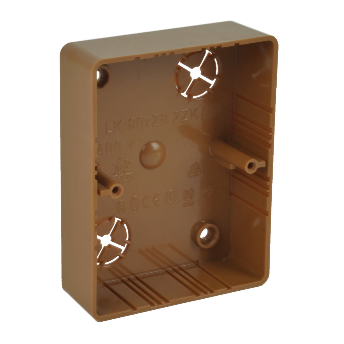LK 80X28 2ZK - KRABICE LIŠTOVÁ, konfigurace SD, barva SVĚTLÉ DŘEVO, balení - 10/80 ks  -  určené pro dvouzásuvky modelové řady Classic nebo Swing, pro instalaci na materiály třídy reakce na oheň E nebo F použijte izolační podložku. odstín pro instalace k lištám v odstínu SD