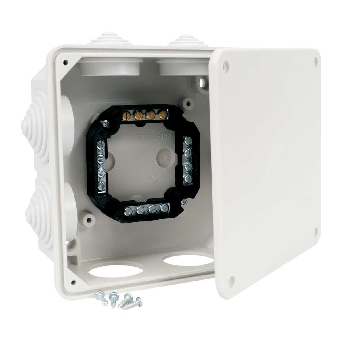 8118 - KRABICE S IP KRYTÍM, konfigurace KA, barva SVĚTLEŠEDÁ/RAL7035, balení - 1/24 ks  -  pro montáž do prostředí se zvýšenou vlhkostí, prachem, chemickou a korozivní odolností, do prostředí se zvýšeným nebezpečím mechanického poškození,univerzální průchodky pro kabely i trubky, průchodky a svorkovnice lze objednat samostatně