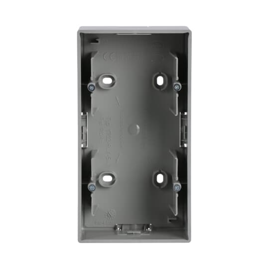 Krabice přístrojová dvojnásobná, pro lištové rozvody; hliníková stříbrná; 1702-83   Vhodné pro designy z vypínačových řad ABB : Fu   Objednací číslo : 2CKA001799A0906