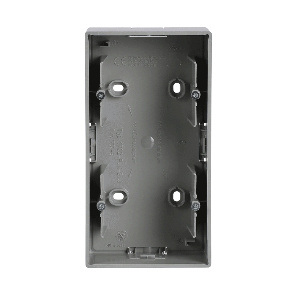 Krabice přístrojová dvojnásobná, pro lištové rozvody; hliníková stříbrná; 1702-83 Vhodné pro designy z vypínačových řad ABB : Fu Objednací číslo : 2CKA001799A0906