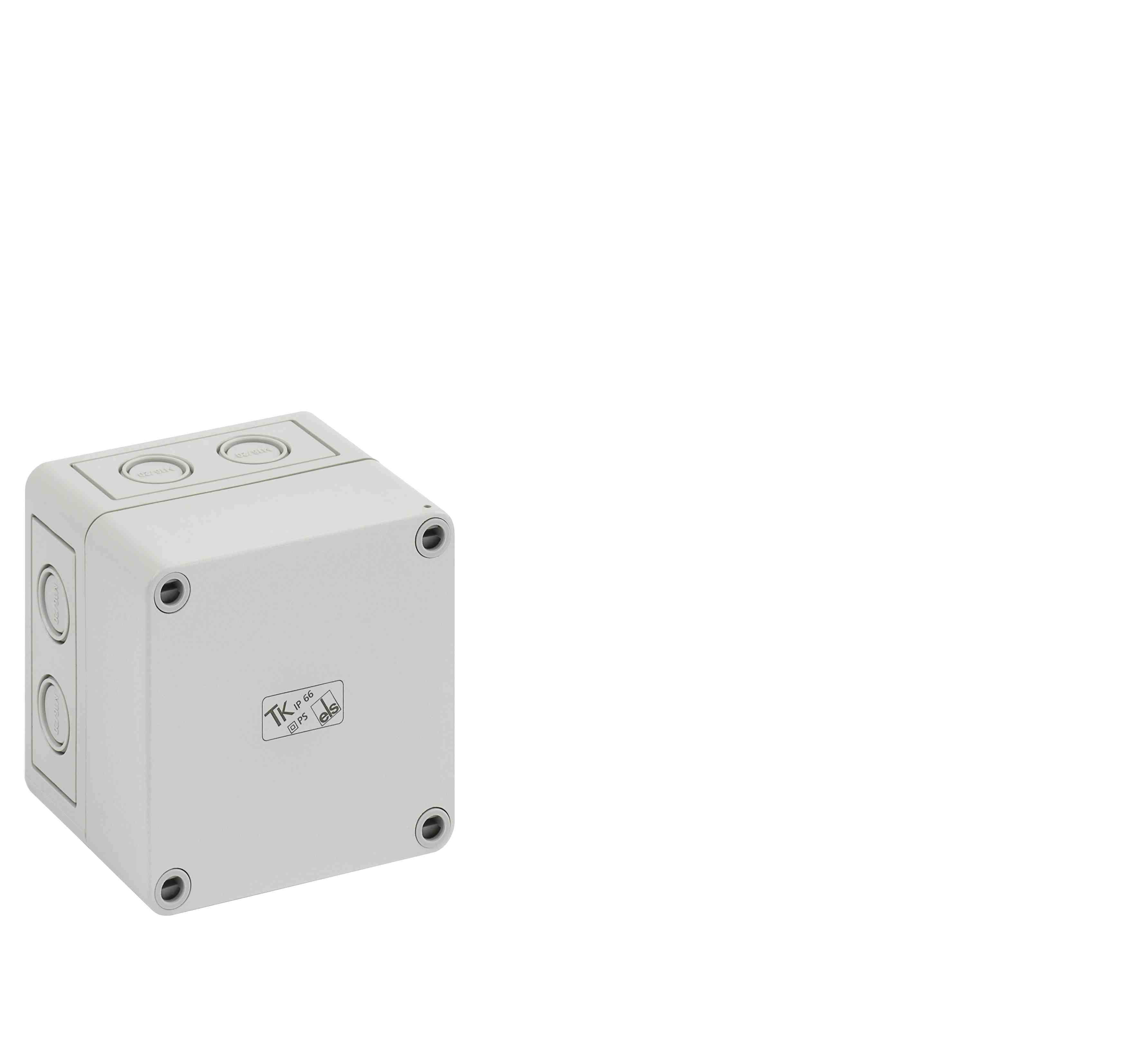 Prázdná skříň, se stupněm krytí IP66, polystyren, Ui=690V AC, Ui=1000V DC, Vnitřní místa pro připevnění, pro standardní instalace ve vnitřním prostoru, Krabice: polystyren, šedá, Víko: polystyren, šedá, Vyrážecí membrány, M16/M20, (7 bočně) Rozměry: 94 x 94 x 81 mm