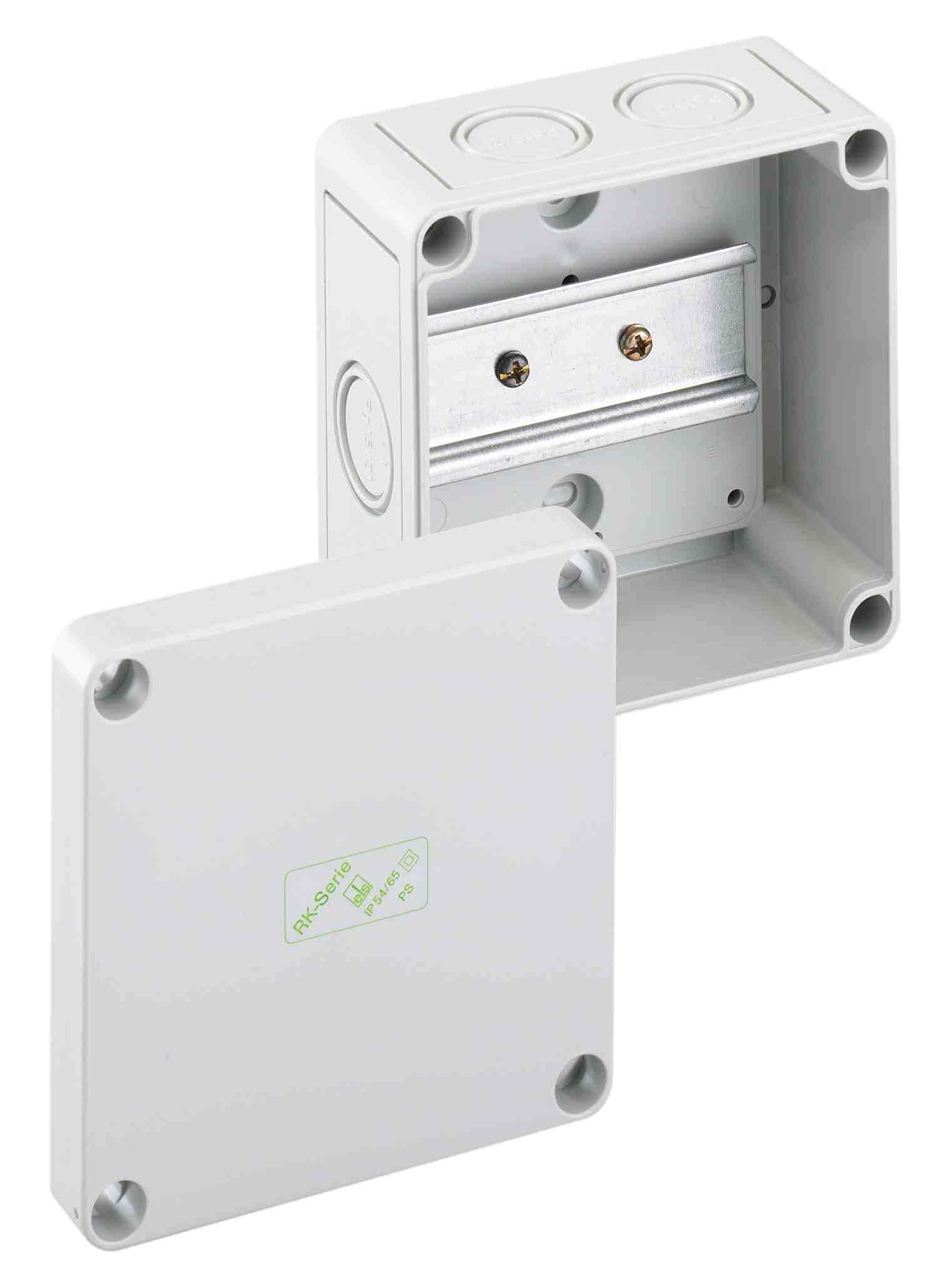 Skříň pro řadové svorkovnice, se stupněm krytí IP54/IP66, Jmenovitý průřez 4 mm?, Ui=400V AC, polystyren, Vnitřní místa pro připevnění, pro standardní instalace ve vnitřním prostoru, bez svorek, s nosnou lištou NS35 Rozměry: 110 x 110 x 90 mm Přiložené příslušenství: 4 Vývodka IP54 M20 Rozsah těsnění 8 - 13,5 mm, 1 Vývodka IP54 M25 Rozsah těsnění 9 - 18,5 mm