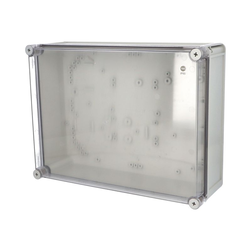 Krabice 68271 IP65 440x330x145mm, montáž na povrch, průhledné víko, hladké boky, plastové šrouby.