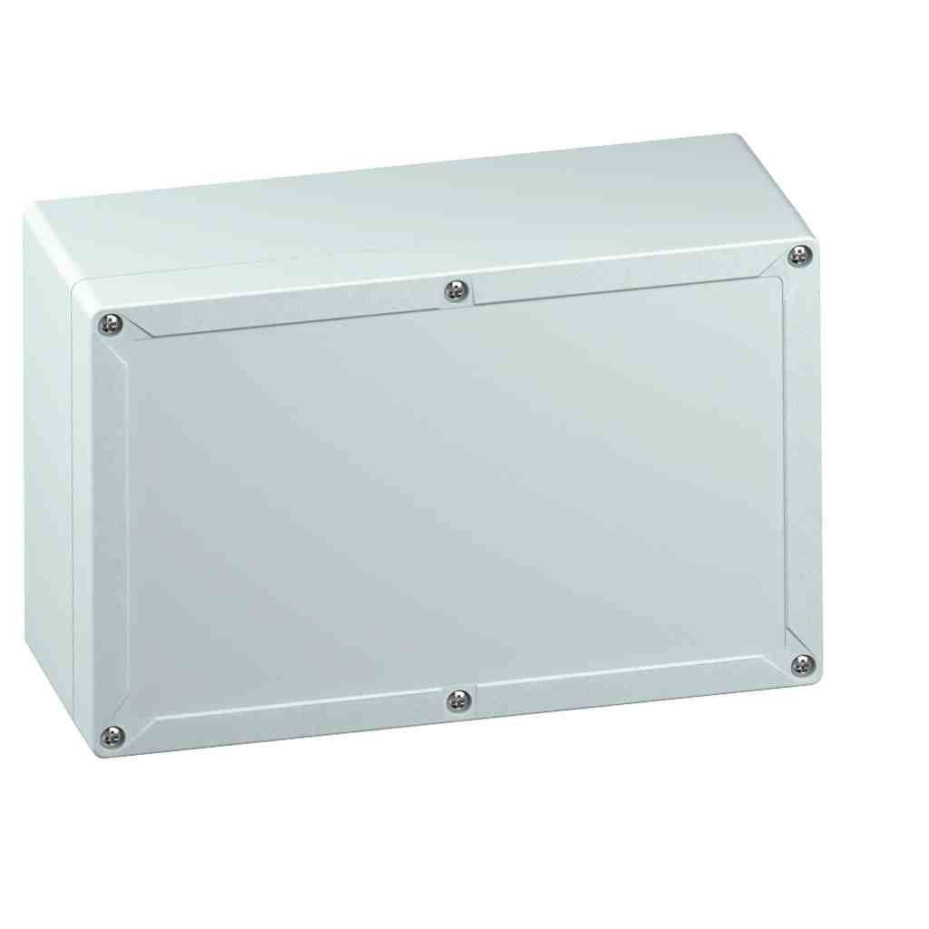 Prázdná skříň, se stupněm krytí IP66/IP67, polykarbonát, Certifikováno UL (UL 50 & CSA 22.2 No. 94.1-07, UL 50E & CSA C22.2 No. 94.2-07), DLG (odolnost vůči čpavku), Ui=690V AC, Ui=1000V DC, Vnitřní místa pro připevnění, pro instalace v průmyslovém prostředí a chráněném venkovním prostředí, s rychlouzávěrem, Krabice: polykarbonát, šedá, Víko: polykarbonát, šedá, hladké boky Rozměry: 252 x 162 x 120 mm Přiložené příslušenství: pojistka proti ztrátě víka, 4 upevňovací šrouby pro příslušenství