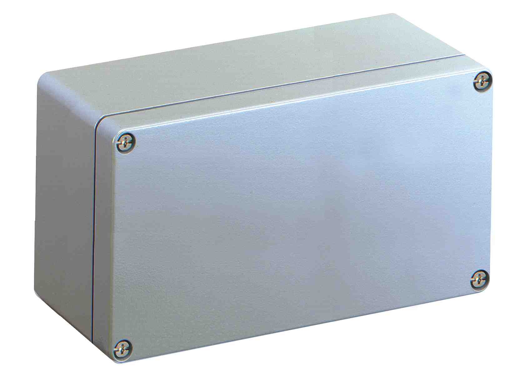 Prázdná skříň, se stupněm krytí IP66, Hliník s práškovým lakováním, Certifikováno UL (UL 508 & CSA C22.2 No. 14-13, UL 50 & CSA 22.2 No. 94.1-7 & UL 50E & CSA C22.2 No. 94.2-7), pro instalace v průmyslovém prostředí a chráněném venkovním prostředí, Krabice: Hliník s práškovým lakováním, Víko: Hliník s práškovým lakováním, stříbrně šedá, hladké boky Rozměry: 199 x 114 x 95 mm