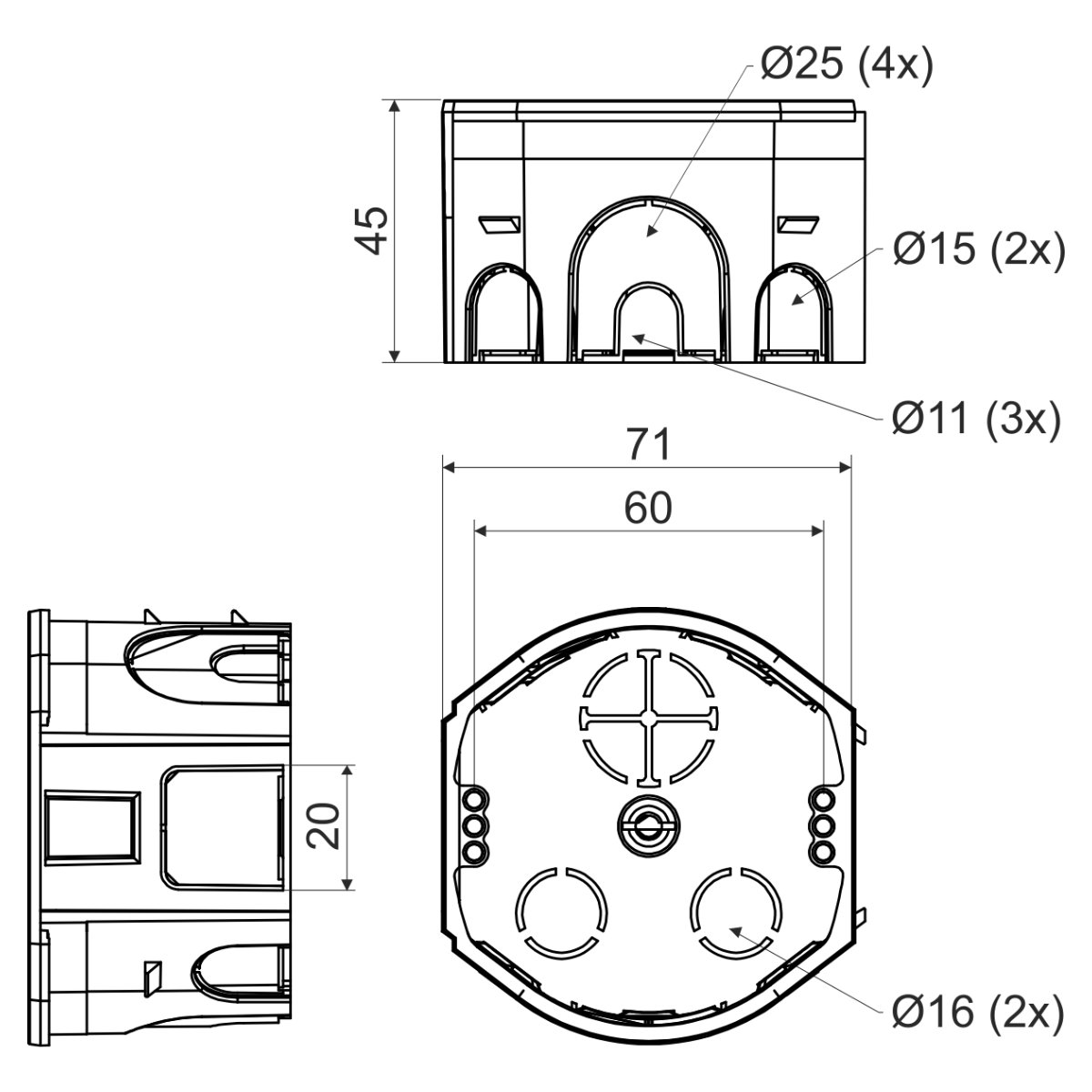 KU 68-45/V - KRABICE UNIVERZÁLNÍ S VÍČKEM KO 68, konfigurace KA, barva šedá, balení po 100 ks v kartonu, možnost vložení bezšroubových svorek
