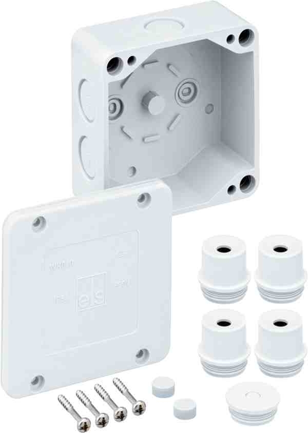 Rozbočovací krabice, se stupněm krytí IP54, Jmenovitý průřez 4 mm?, Ui=690V AC, Certifikováno VDE (DIN EN 60670-1/-22 (VDE 0606-1/-22)), Vyrážecí membrány, M20, (7 bočně), Vnitřní místa pro připevnění, pro standardní instalace ve vnitřním prostoru, šedá, bez svorek Rozměry: 87 x 87 x 45 mm Přiložené příslušenství: 4 Vývodka IP54 M20 Rozsah těsnění 8 - 13,5 mm, 1 Zaslepovací zátky M20