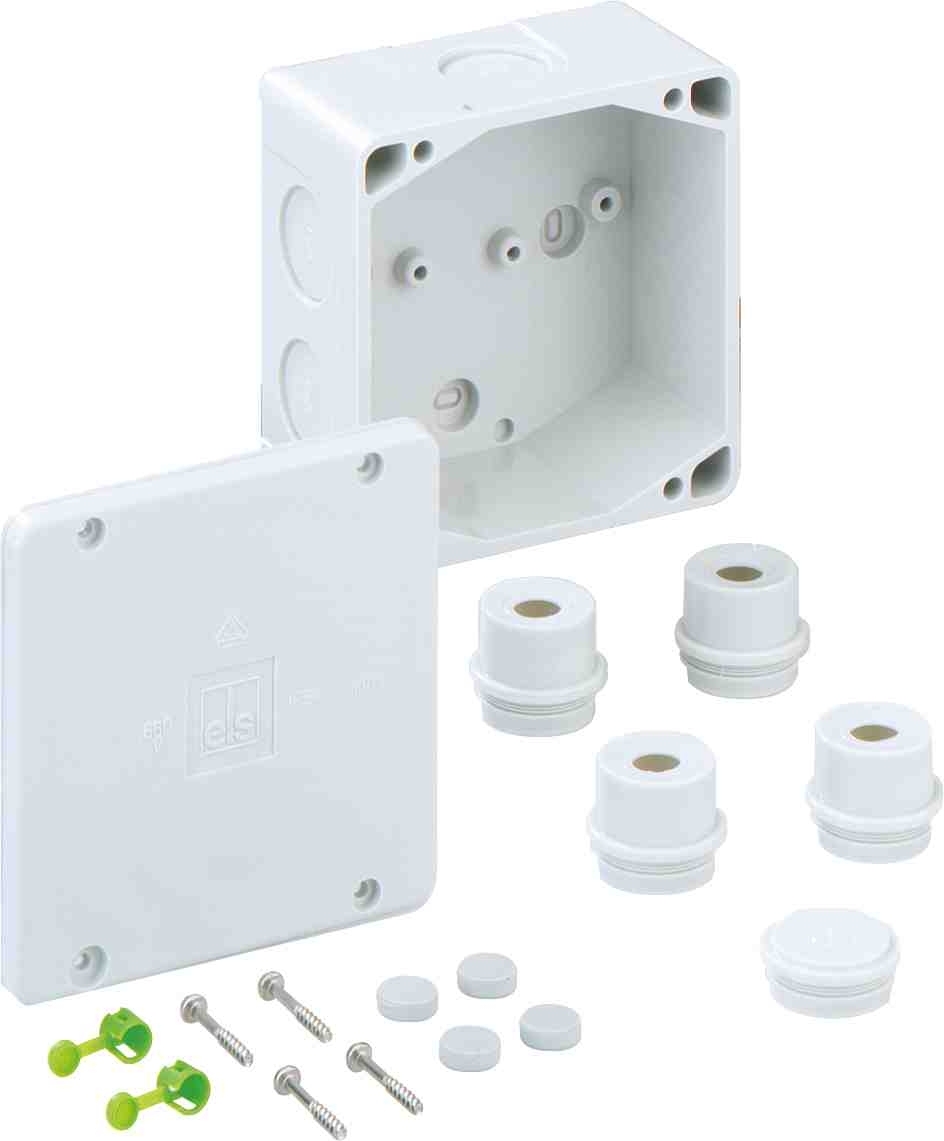 Spojovací krabice, Rozbočovací krabice, se stupněm krytí IP54, Jmenovitý průřez 10 mm?, Ui=690V AC, Certifikováno VDE (DIN EN 60670-1/-22 (VDE 0606-1/-22)), Vyrážecí membrány, M32, (7 bočně), Vnitřní místa pro připevnění, pro standardní instalace ve vnitřním prostoru, šedá, bez svorek Rozměry: 115 x 115 x 66 mm Přiložené příslušenství: 4 Vývodka IP54 M32 Rozsah těsnění 13 - 23 mm, 1 Zaslepovací zátky M32, 1 Plombovací souprava