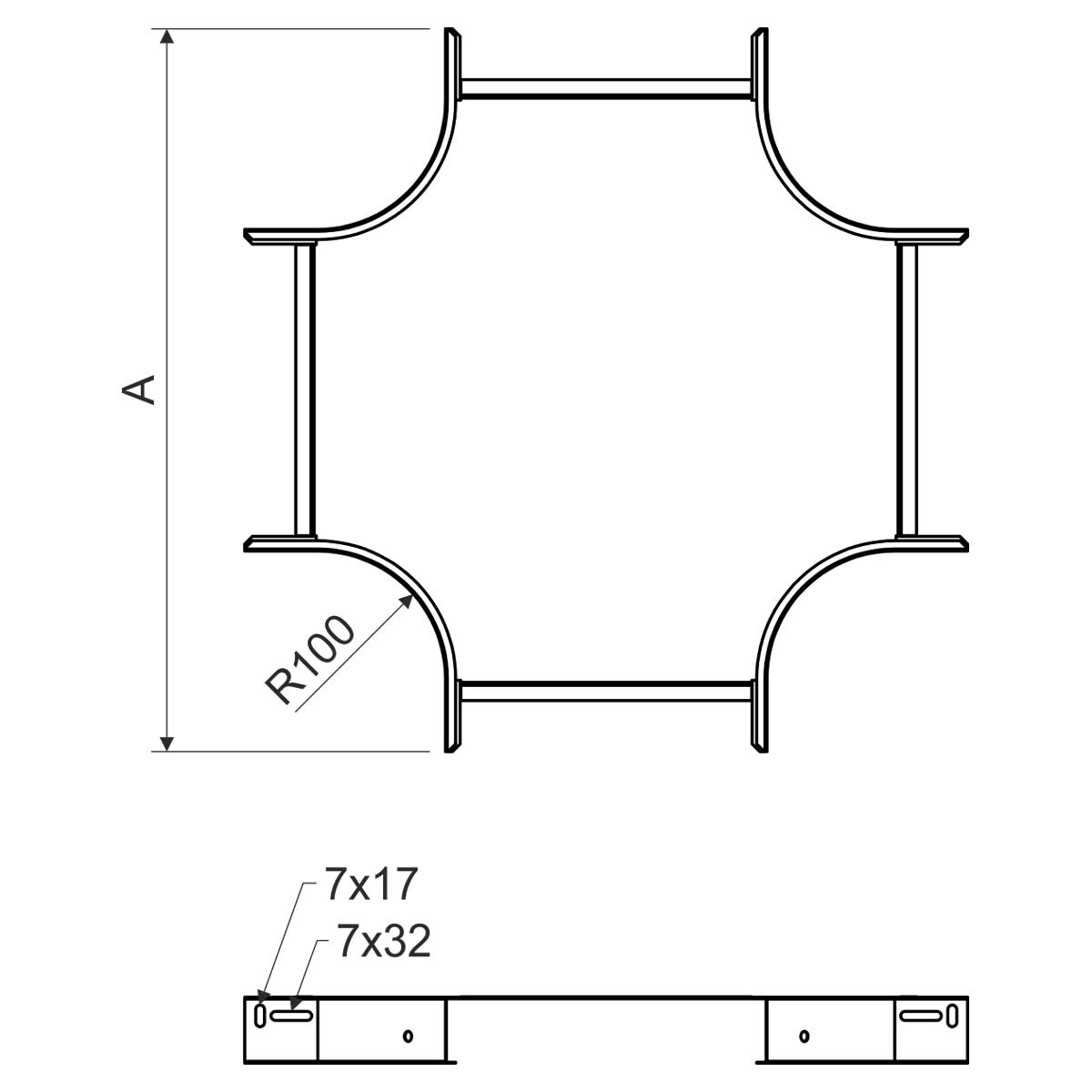 Pro vytvoření křížení kabelových žlabů rozměru 50x250, pro přímě spojení s kabelovým žlabem bez použití spojky, povrchová úprava sendzimir