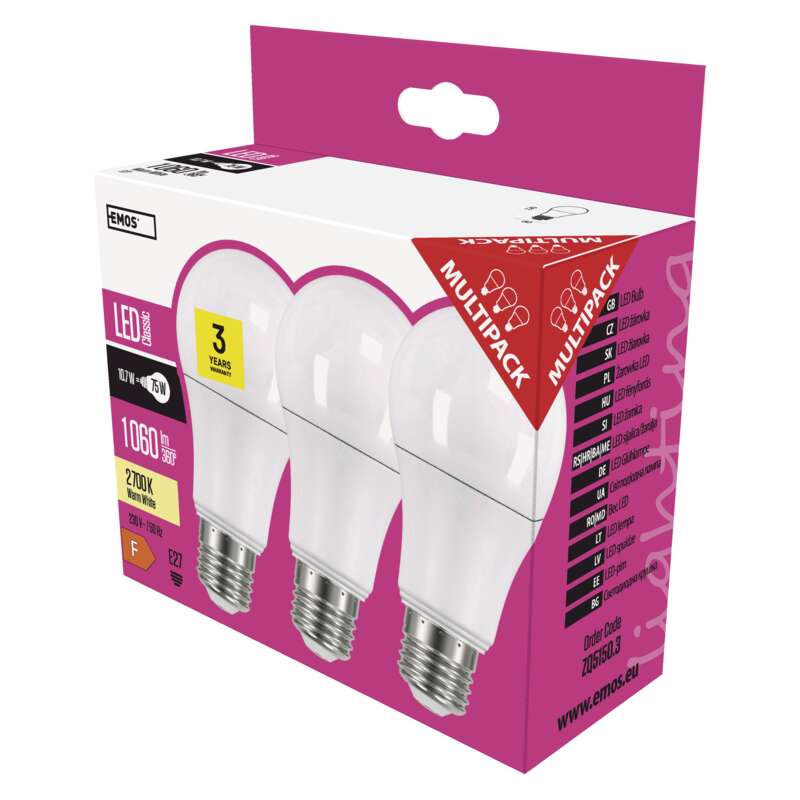 LED CLS A60 10,7W(75W) 1060lm E27 WW 3PC *ZQ5150.3 emos