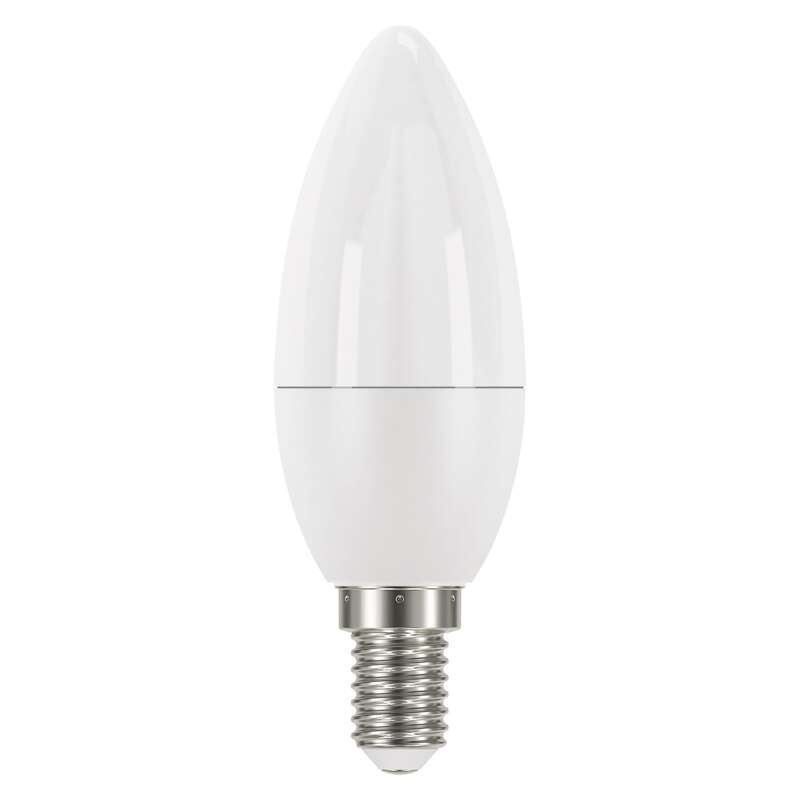 LED žárovka Classic Candle 5W E14 teplá bílá == barva světla: teplá bílá|energetická třída (od 1.9.2021): F|index podání barev (CRI): 80|náhrada za žárovku: 40 W|napětí: 230 V~/50 Hz|patice (uchycení žárovky): E14|počet čipů: neuvádí se|počet spínacích cyklů: 25 000|příkon: 5 W|prodejní obal: 1 ks, krabička|řada: CLASSIC|rozměr: 102 × 35 × 35mm|stmívatelná: ne|světelná účinnost: 94 lm/W|světelný tok: 470 lm|technologie: LED|teplota chromatičnosti: 2 700 K|tvar: Candle|typ čipů: SMD|účiník: 0,51|úhel vyzařování: 270°|záruční doba: 3 roky|životnost: 30 000 hodin
