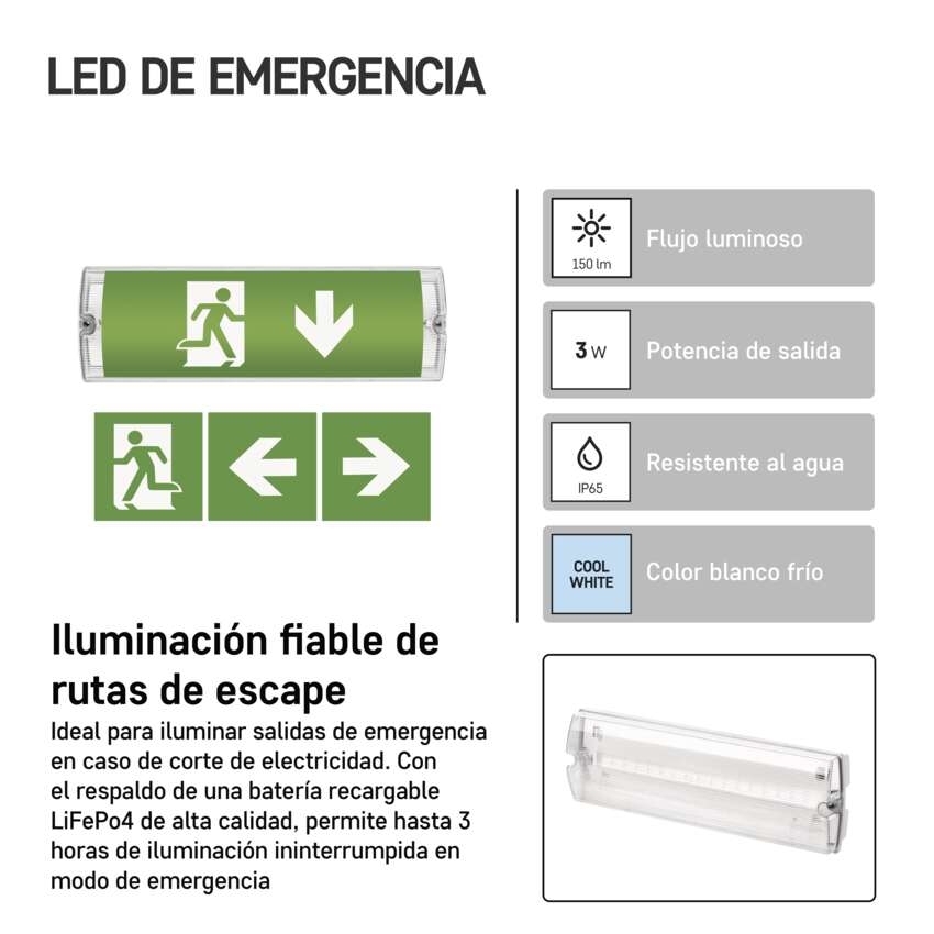LED Nouzové svítidlo NESSI 3W 3h IP65 == barva světla: studená bílá|barva těla: bílá|délka zálohy: 3 h|doba nabíjení baterie: ? 24 hodin|frekvence napájecího napětí: 50/60 Hz|kapacita baterie: 1 500 mAh|kontrolní vybavení: manuální tlačítko|krytí: IP65|materiál difuzoru: plast (PC)|materiál těla: plast (ABS)|napájecí napětí: 220–240 V AC|příkon na vstupu: 3 W|prodejní obal: 1 ks, krabice|provozní režim: trvalý/photovostní|rozměr: 351 × 111 × 63 mm|rozsah pracovních teplot: 0 °C až +40 °C|stupeň ochrany proti mechanickým nárazům: IK08|světelný tok: 150 lm|teplota chromatičnosti: 6 500 K|třída ochrany: II|typ baterie: LiFePo4|typ montáže: přisazená|účiník: >0,5|vstupní proud: 18 mA|výstupní napětí: 10–72 V DC|výstupní napětí v nouzovém režimu: 10–50 V DC, konstantní proud|výstupní výkon v nouzovém stavu: 3 W|záruční doba: 4 roky|záruka na baterii: 2 roky|zdroj světla: LED