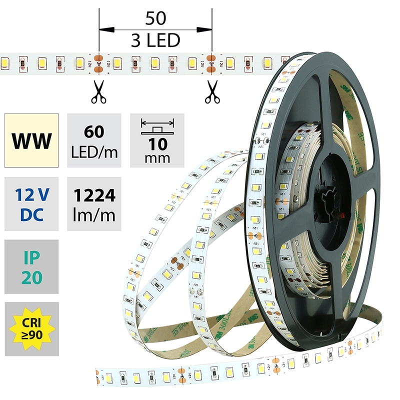 LED pásek SMD2835WW, 60LED/m, 14,4W/m,1224lm/m, IP20, DC 12V,10mm,50m *ML-121.700.60.2