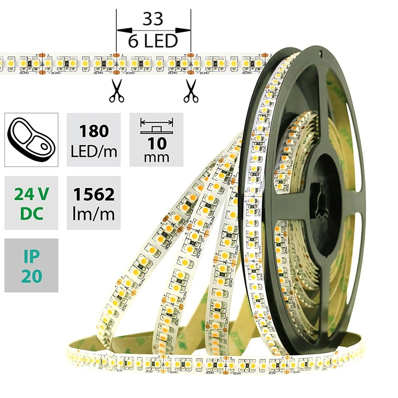 LED pásek SMD3528FM, 180LED/m, 14,4W/m, 1562lm/m, IP20, DC24V, 10mm, 5m, potraviny.maso