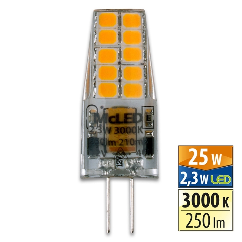 LED žárovka 2,3W, G4, 3000K, CRI 80, vyzař. úhel 300°, sv. tok 250lm, PF 0,98, 210mA *ML-3