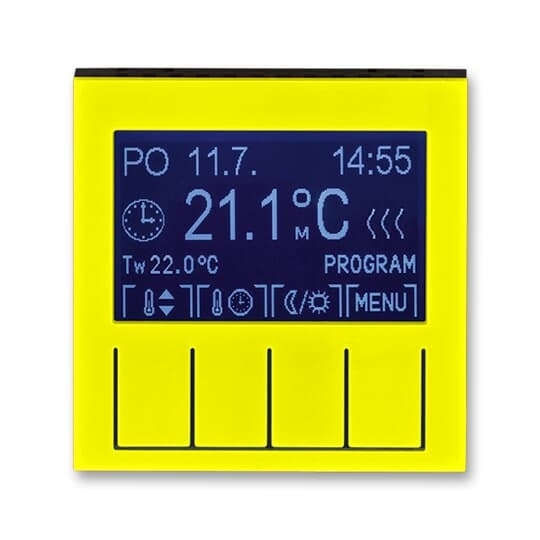 Termostat univerzální programovatelný (ovládací jednotka); žlutá/kouřová černá Vhodné pro designy z vypínačových řad ABB : H Objednací číslo : 3292H-A10301 64