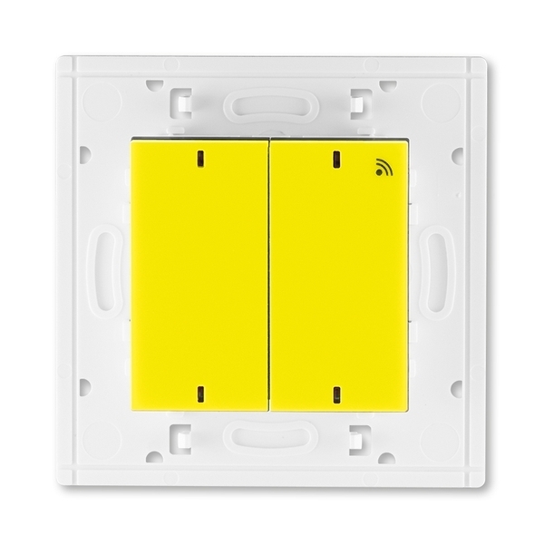 Vysílač RF dvojnásobný, nástěnný, 868 MHz; žlutá/kouřová černá Vhodné pro designy z vypínačových řad ABB : RF-H Objednací číslo : 3299H-A11908 64