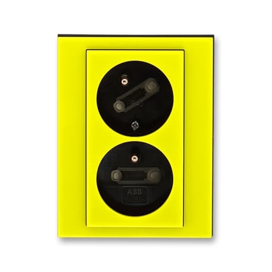 Zásuvka dvojnásobná s ochr. kolíky, s clonkami, s natočenou dutinou; žlutá/kouřová černá Vhodné pro designy z vypínačových řad ABB : H Objednací číslo : 5513H-C02357 64