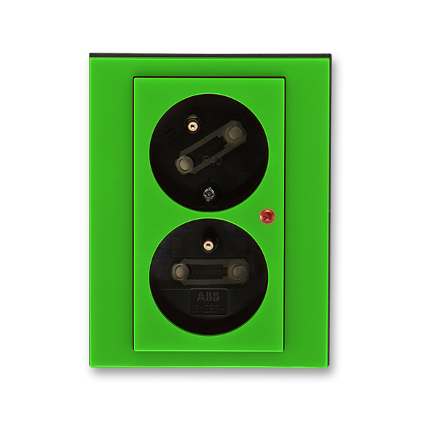 Zásuvka dvojnásobná, s ochranou před přepětím; zelená/kouř. černá Vhodné pro designy z vypínačových řad ABB : H Objednací číslo : 5593H-C02357 67