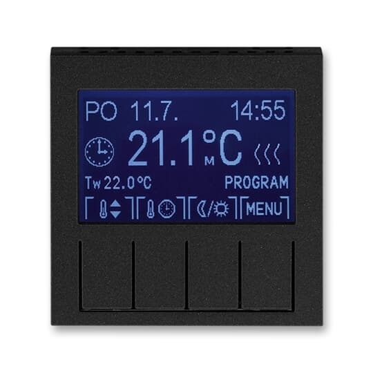 Termostat univerzální programovatelný (ovládací jednotka); onyx/kouřová černá   Vhodné pro designy z vypínačových řad ABB : HM   Objednací číslo : 3292H-A10301 63