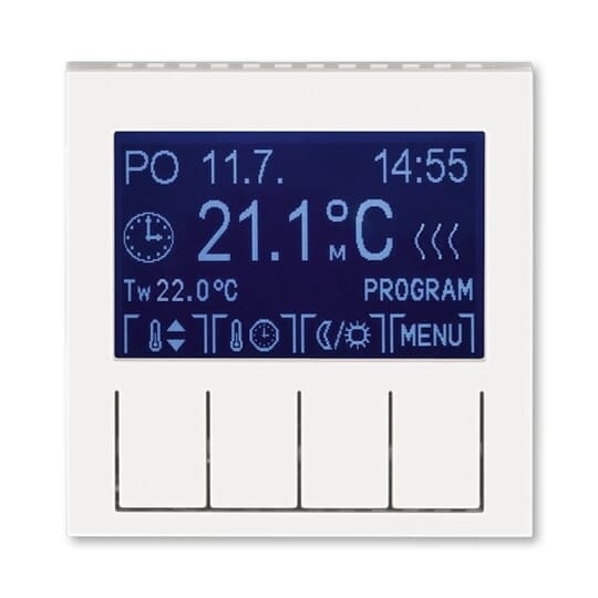 Termostat univerzální programovatelný (ovládací jednotka); perleťová/ledová bílá Vhodné pro designy z vypínačových řad ABB : HM Objednací číslo : 3292H-A10301 68