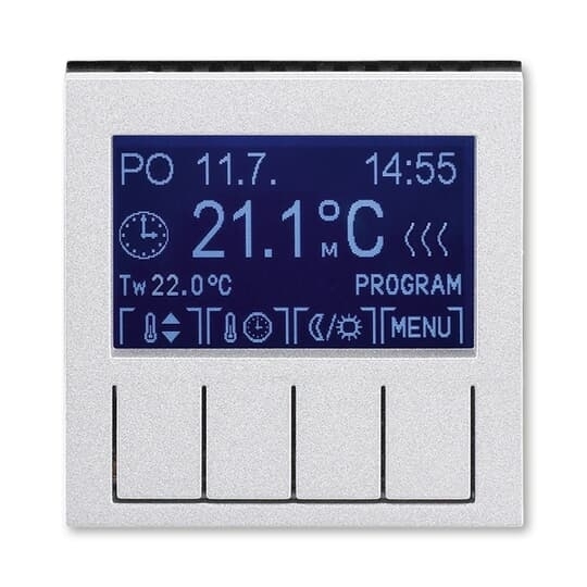 Termostat univerzální programovatelný (ovládací jednotka); titanová/kouř. černá   Vhodné pro designy z vypínačových řad ABB : HM   Objednací číslo : 3292H-A10301 70