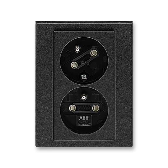 Levit®M 5513H-C02357 63 zásuvka dvojnásobná s ochr. kolíky, s clonkami, s natočenou dutinou barva onyx / kouřová černá ABB