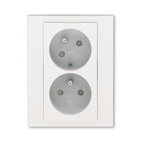 Zásuvka dvojnásobná s ochr. kolíky, s clonkami, s natočenou dutinou; perleťová/ledová bílá   Vhodné pro designy z vypínačových řad ABB : HM   Objednací číslo : 5513H-C02357 68