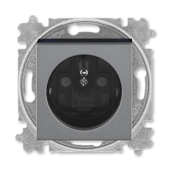 Zásuvka jednonásobná s ochranným kolíkem, s clonkami; ocelová/kouř. černá Vhodné pro designy z vypínačových řad ABB : HM Objednací číslo : 5519H-A02357 69