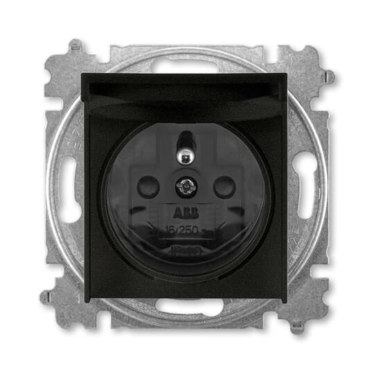Zásuvka jednonásobná s ochr. kolíkem, s clonkami, s víčkem; onyx/kouřová černá Vhodné pro designy z vypínačových řad ABB : HM Objednací číslo : 5519H-A02397 63
