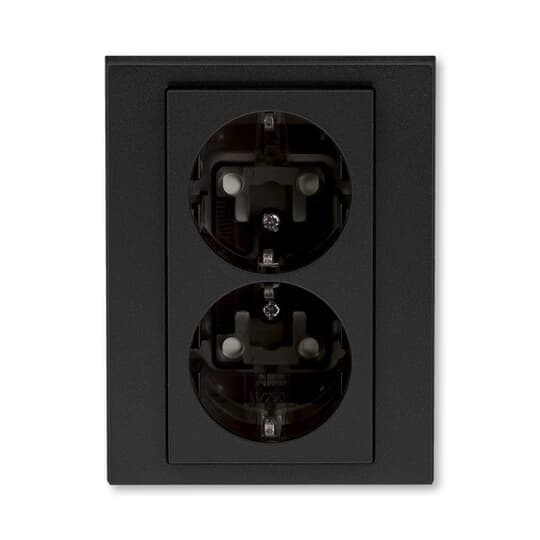 Zásuvka dvojnásobná s ochrannými kontakty (podle DIN), s clonkami, bš.; onyx/kouřová černá   Vhodné pro designy z vypínačových řad ABB : HM   Objednací číslo : 5522H-C03457 63