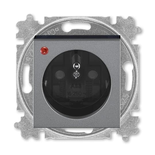 Zásuvka jednonásobná, s ochranou před přepětím; ocelová/kouř. černá Vhodné pro designy z vypínačových řad ABB : HM Objednací číslo : 5599H-A02357 69