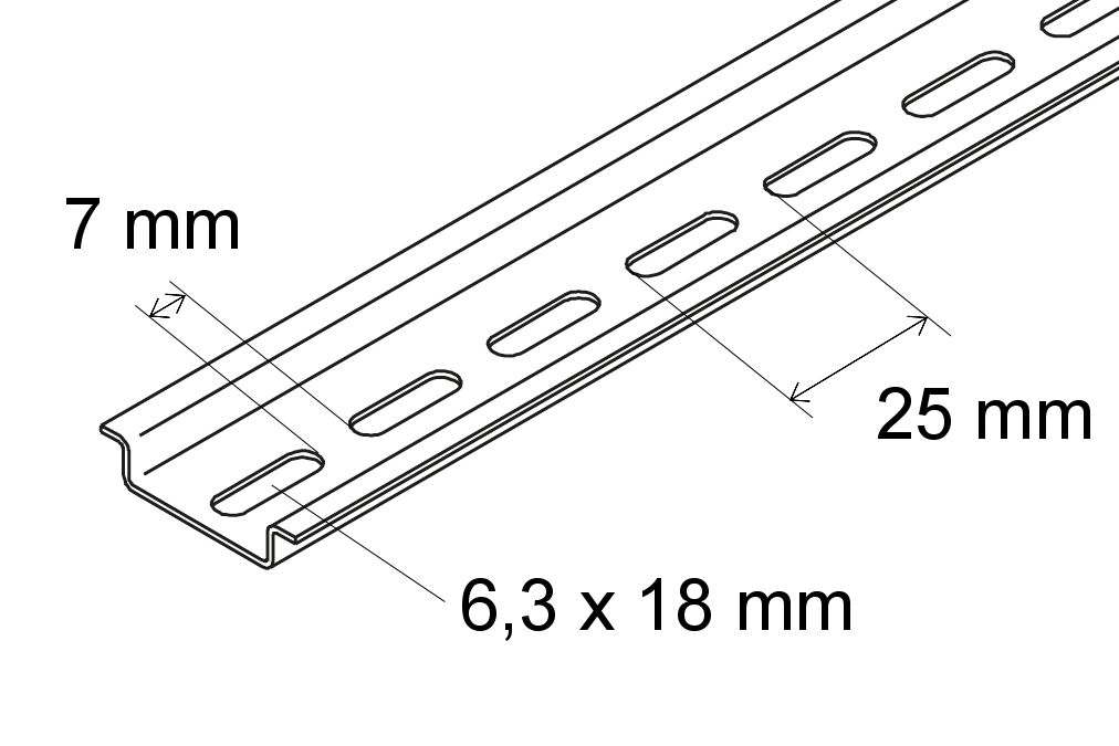 Lišta nosná TS35/2-7,5 (DIN lišta) - perforovaná 6,3x18mm, hloubka 7,5mm, 2m, pozink.