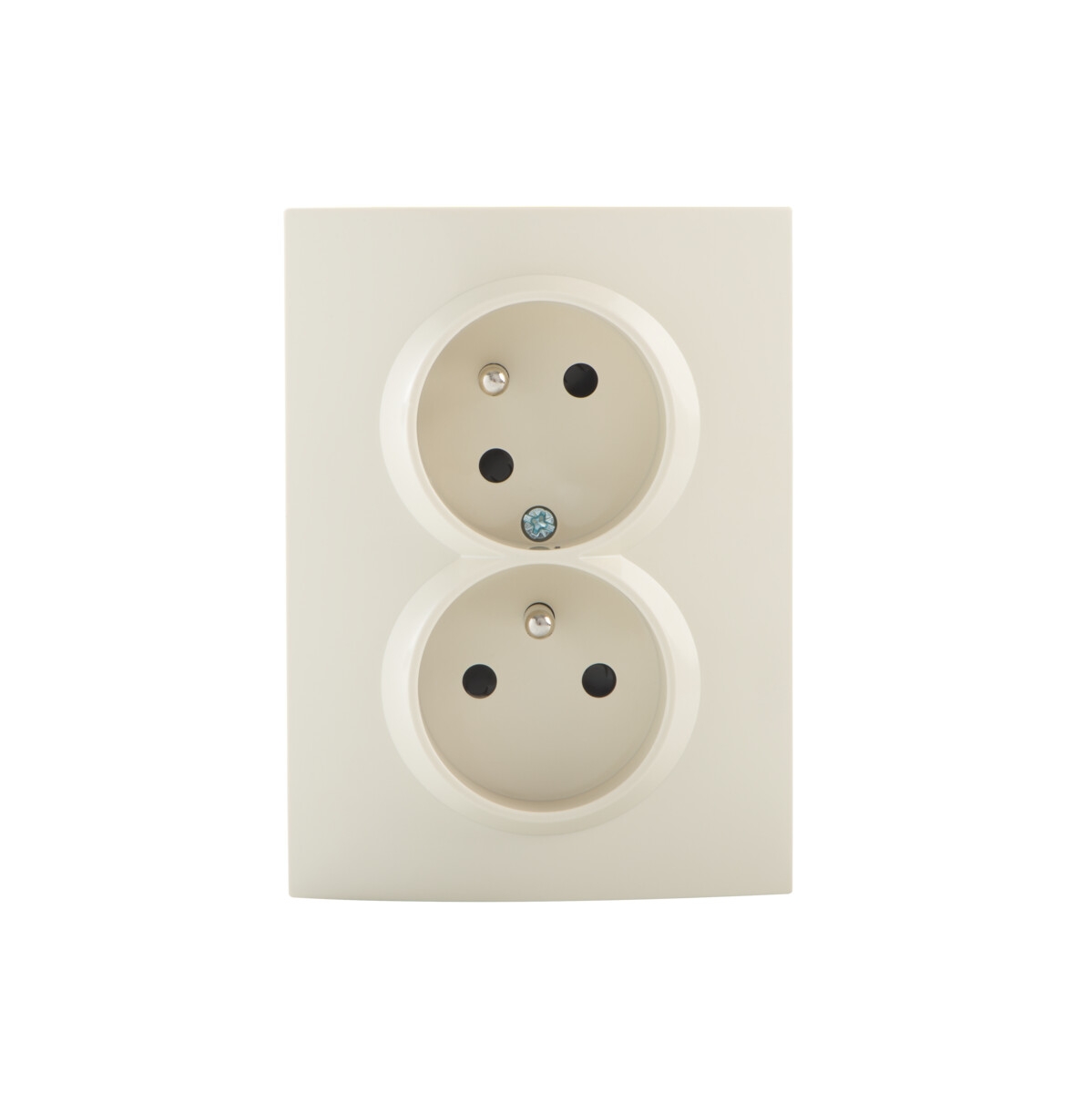 Zásuvka dvojitá s uzemněním, pootočená, kompletní - krémová (starý kód  25441)