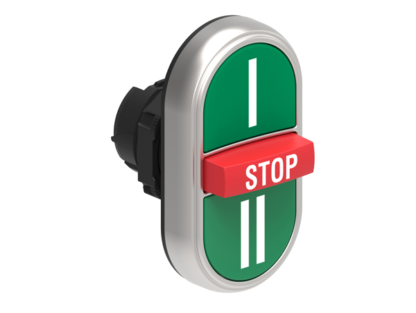 Lovato LPCB7345 Trojtlačítková plastová hlavice se symboly I-STOP-II lícující + střed vystouplý