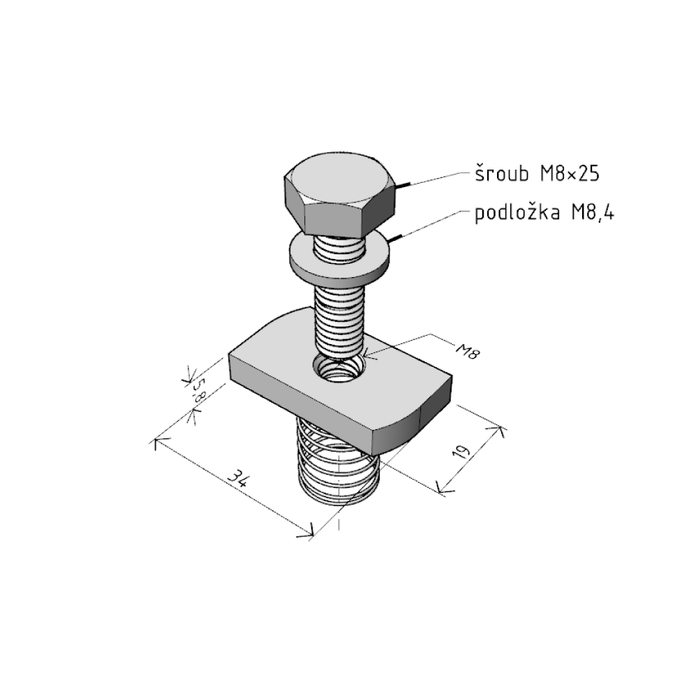 Matice obdelníková MSM/M8 "GZ" pro ukotvení nosník/stojna *ARK-218952 Arkys