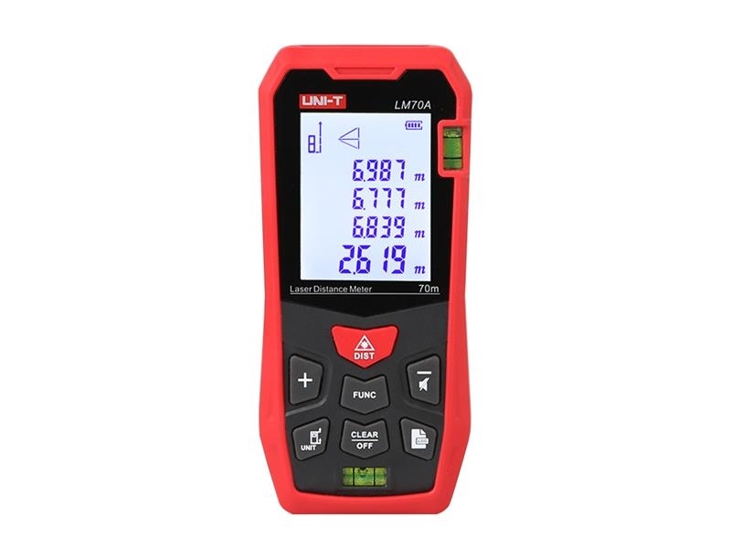 LM70A laserový dálkoměr - je malý kompaktní a jedinečný pomocník nejen pro kutily, ale i profesionály, který pomůže rychle zaměřit jakýkoliv prostor. Měřit lze vzdálenost, obsah a objem. Přístroj disponuje čtyřmi režimy, které pomocí Pythagorovy věty měří vzdálenost jedné strany trojúhelníku, což je výhodné pro uživatele k provádění nepřímeho měření ve složitém prostředí. Hodnoty měření jedné vzdálenosti lze take sčítat nebo odčítat a naměřená data uložit do paměti přístroje.