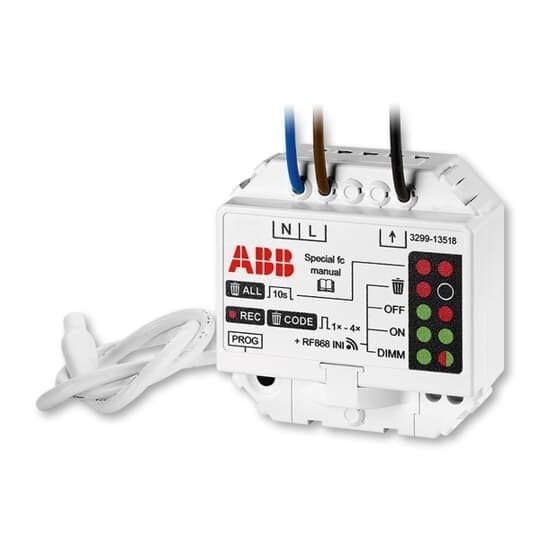 Modul přijímače RF, stmívací pro LED žárovky, vestavný   Vhodné pro designy z vypínačových řad ABB : RF   Objednací číslo : 3299-13518