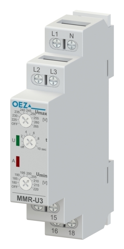 Monitorovací relé MMR-U3-001-A230 sledování nadpětí, podpětí a výpadku fáze, Uc AC 230 V, 1x přepínací kontakt 8 A OEZ:43244