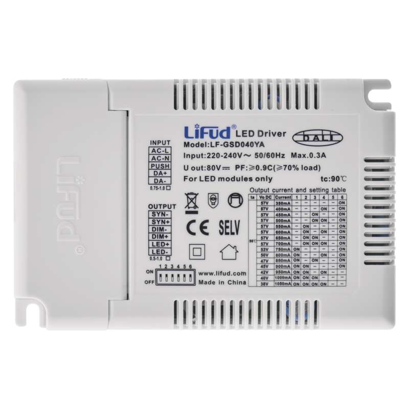 Multifunkční e×terní driver pro LED panely == frekvence: 50/60 Hz|napětí na výstupu: 30–57 V DC|napětí vstupu: 180–264 V AC|příkon: 16–40 W|proud na výstupu: 350–1 050 mA|rozměr: 124,5 × 82,5 × 25,4 mm|typ: MULTI|určeno pro: neuvádí se|záruční doba: 5 let