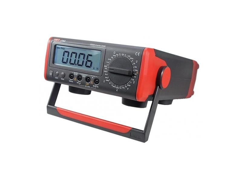 Na tento výrobek poskytujeme 3 roky záruku. Stolní multimetr UT802 je víceúčelový elektronický měřicí přístroj. Splňuje s vysokou přesností a pohodlností obsluhy potřeby měření elektrických parametrů při údržbě elektronických zařízení. Výhodou je mnoho funkcí a možnost použití i mimo dosah napájecího napětí 230V, protože umožňuje také práci na baterie. Přístroj má podsvětlený LCD displej se zobrazitelnou hodnotou ±19999. Přístroj je vyroben dle standardů IEC61010-1 a vyhovuje kategorii CAT II 1000V.
