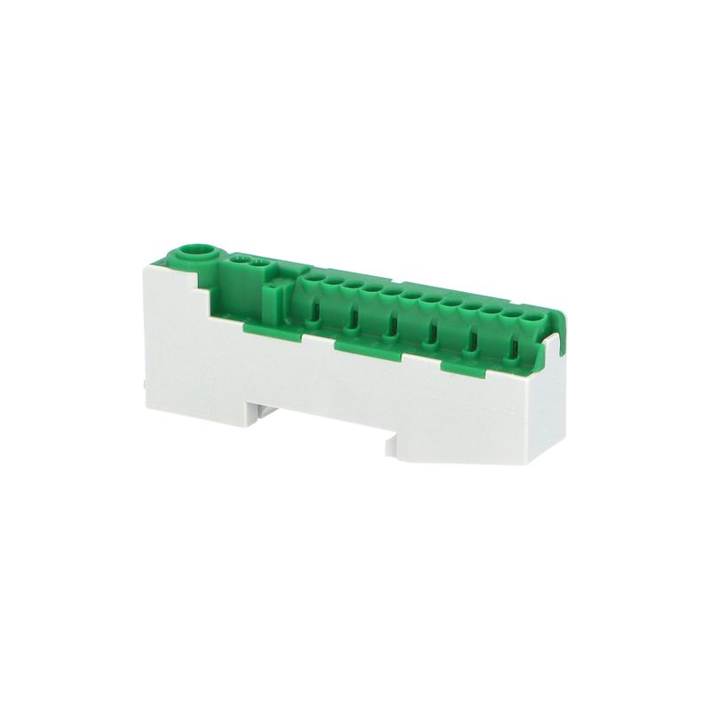 Můstek PE 14-S bezšroubový, krytý IP20, zelený, 80A, na DIN, rozměr 90x17x35mm.