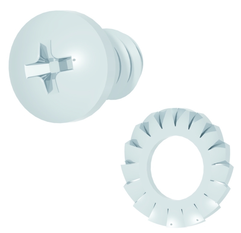 Sada šroubů ND-RBZ-SCRZ-4 šroub pro připevnění rámu dveří do základny, vějířová podložka, sada 4 ks, pro RZB OEZ:44484