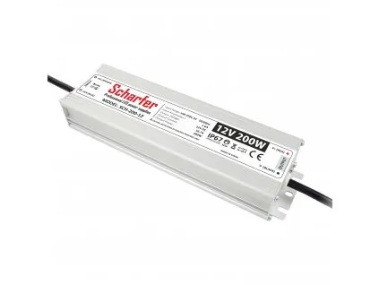 Napájecí zdroj 200W 16,67A 12VDC pro LED zdroje a LED moduly profesionální IP67 226x65x35 mm Scharfer *SCH-200-12