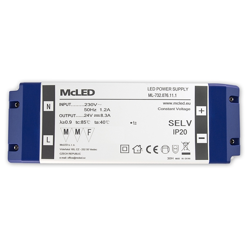 Napájecí zdroj 200W, DC24V/8,3A, IP20, plastové provedení se svorkovnicí *ML-732.076.11.1