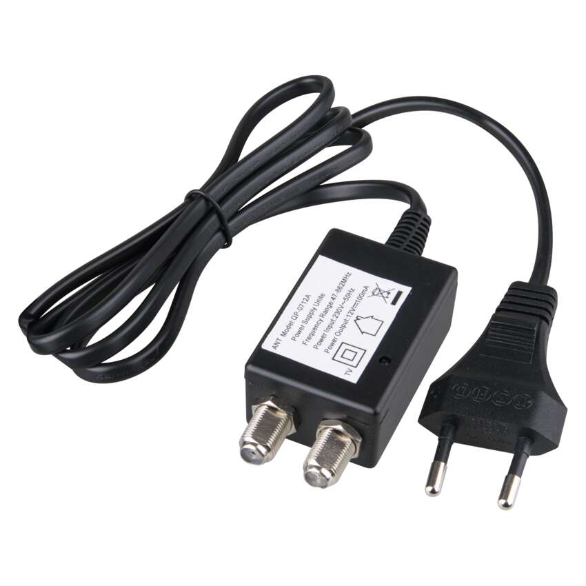 Napájecí zdroj stabilizovaný s výhybkou 100mA == délka přívodního kabelu: neuvádí se|ECO design: ano|filtrační kondenzátor: 470 µF|max. zatížení výstupu stálé/ve špičce: 100 mA|napájecí kabel: 1,5 m|napájecí výhybka: ano|prodejní obal: 1 ks, krabice|produkt: napájecí zdroj|provedení: SMPS spínaný|průchozí útlum napájecí výhybky: 1 dB|rozměr: 24 × 68 × 35 mm|spotřeba v pohotovostním režimu: <0,3 W|určeno pro: napájení anténních předzesilovačů|vstupní konektor výhybky: F konektor|vstupní napětí: 110–230 V|výstupní konektor výhybky: F konektor|výstupní napětí: 12 V|výstupní proud: 100 mA