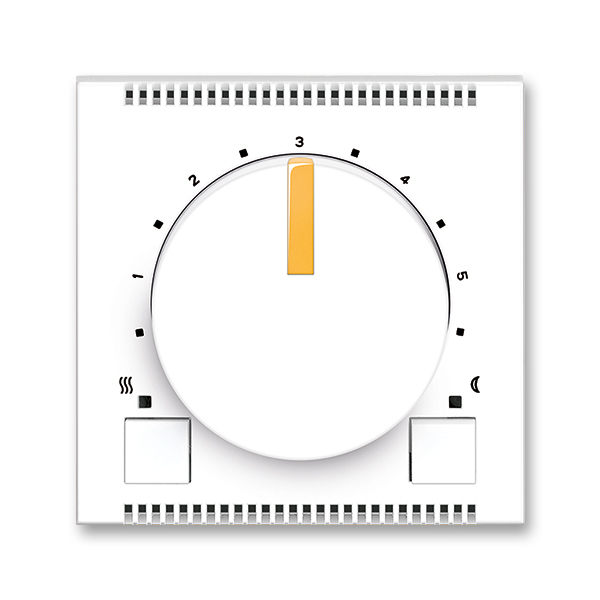 Termostat univerzální s otočným nastavením teploty (ovl. jednotka); bílá/ledová oranžová   Vhodné pro designy z vypínačových řad ABB : M   Objednací číslo : 3292M-A10101 43