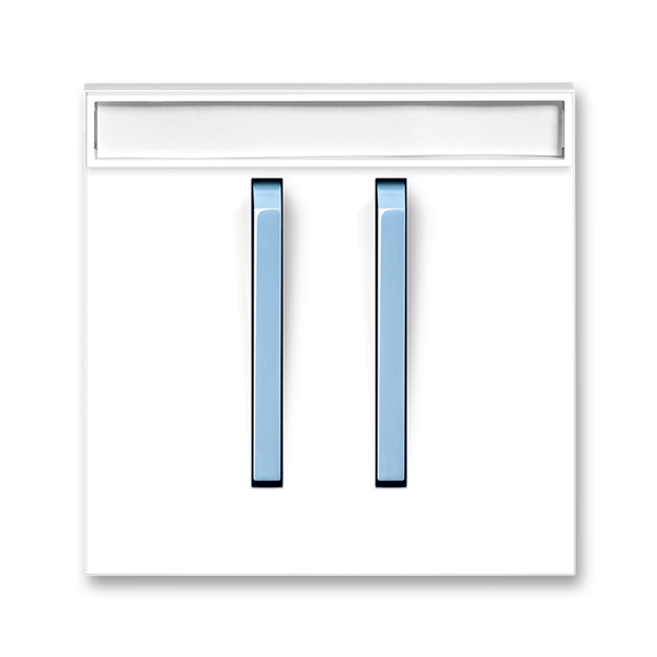 Kryt spínače jednoduchý se dvěma páčkami, s popisovým polem; bílá/ledová modrá Vhodné pro designy z vypínačových řad ABB : M Objednací číslo : 3559M-A00615 41