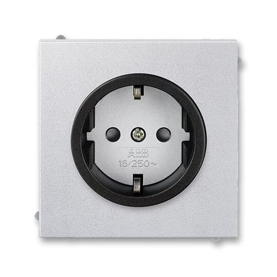 Zásuvka jednonásobná s ochrannými kontakty (podle DIN), s clonkami; titanová/onyx   Vhodné pro designy z vypínačových řad ABB : MT   Objednací číslo : 5518M-A03459 72